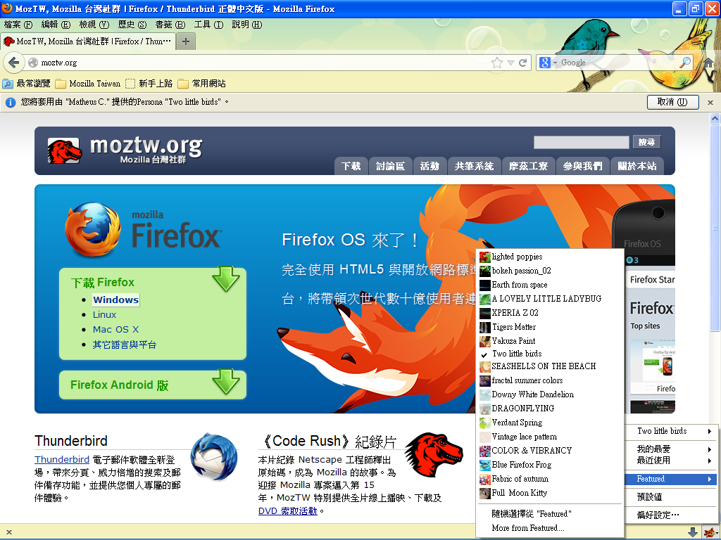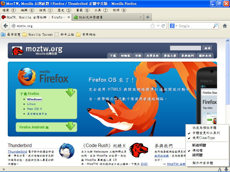 本版本已終止開發,下載最新版 Firefox 請至 Firefox 正體中文版 頁面
